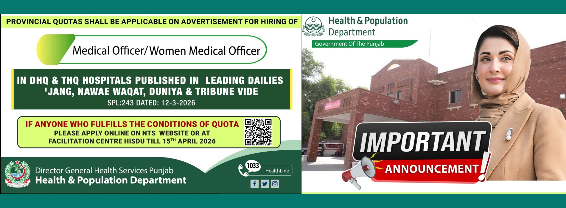 Health & Population Department, invites applications from eligible applicants for hiring on attractive Pay Package in Cardiac Catheterization Labs in Mianwali, Attock, Jhelum, Kasur, Layyah, Vehari, B...