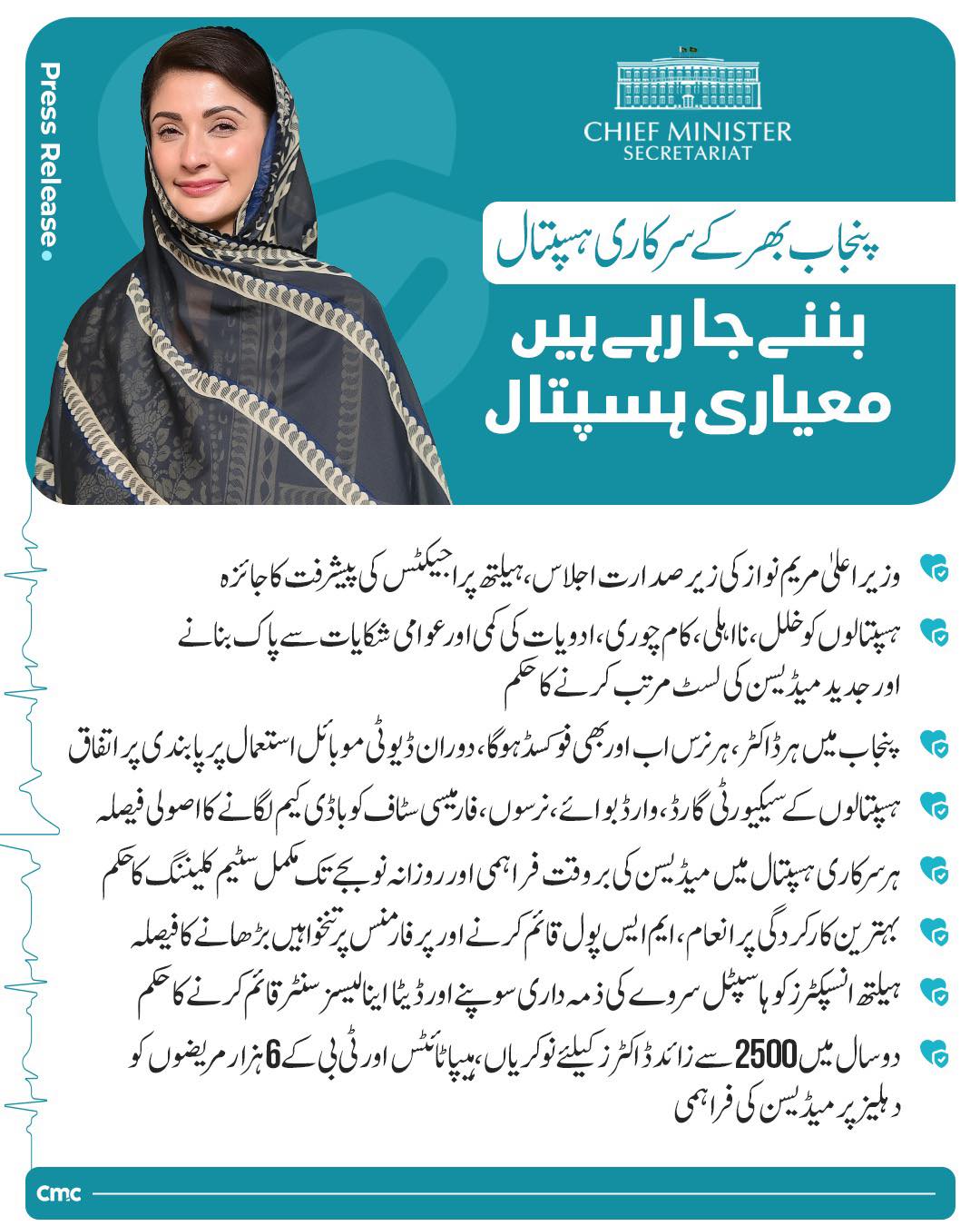 Under the resolute leadership and selfless dedication of Chief Minister Punjab, Maryam Nawaz Sharif, a new spirit of hope, trust, and transformation has been infused into Punjab’s healthcare system. Her tireless efforts and unwavering commitment to public service have laid the foundation of a strong, modern, and efficient health system.