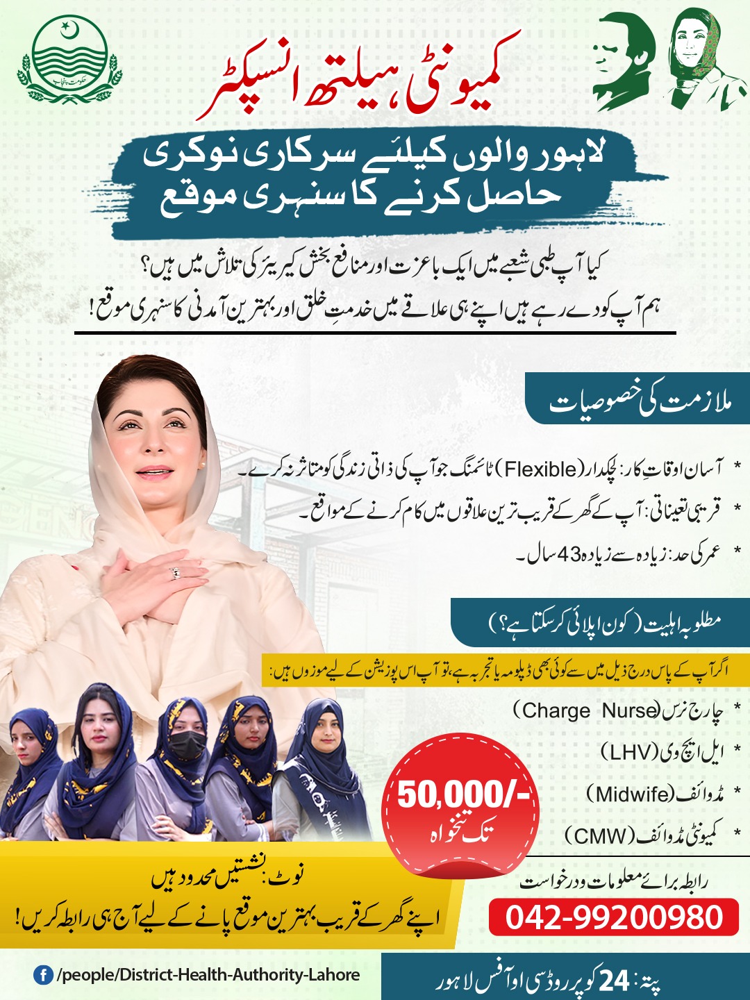 The Health and Population Department Punjab has announced job opportunities for women in Lahore for positions including Charge Nurse, LHV, Midwife, and CMW. The initiative offers flexible working hours, placements near residence, and a monthly package of up to Rs. 50,000, aiming to empower women and strengthen healthcare services.